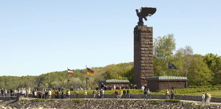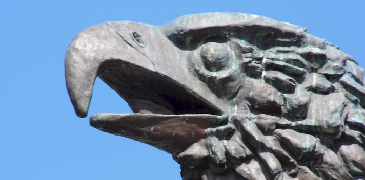 Weit sichtbar ist das Wahrzeichen des Ostseebades Heikendorf, der mächtige 4,60 m hohe Adler auf dem roten 15,30 m hohen Wesersandsteinpfeiler mit dem U-Boot-Kriegsabzeichen.