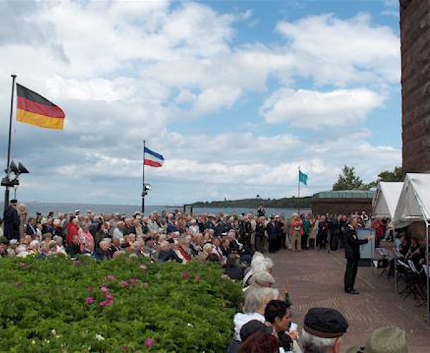 Viele Gäste folgten der Einladung des Volksbundes Deutscher Kriegsgräberfürsorge e.V. zur Gedenkstunde aus Anlass des 70. Jahrestages der Einweihung des U-Boot-Ehrenmals auf der Möltenorter Schanze.