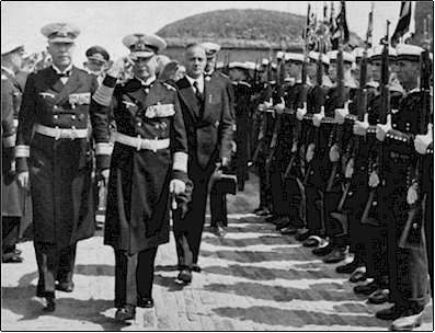 Admiral Albrecht, Konteradmiral Mewis und der Bundesführer Dr. Eulen beim Abschreiten der Ehren-Kompanie