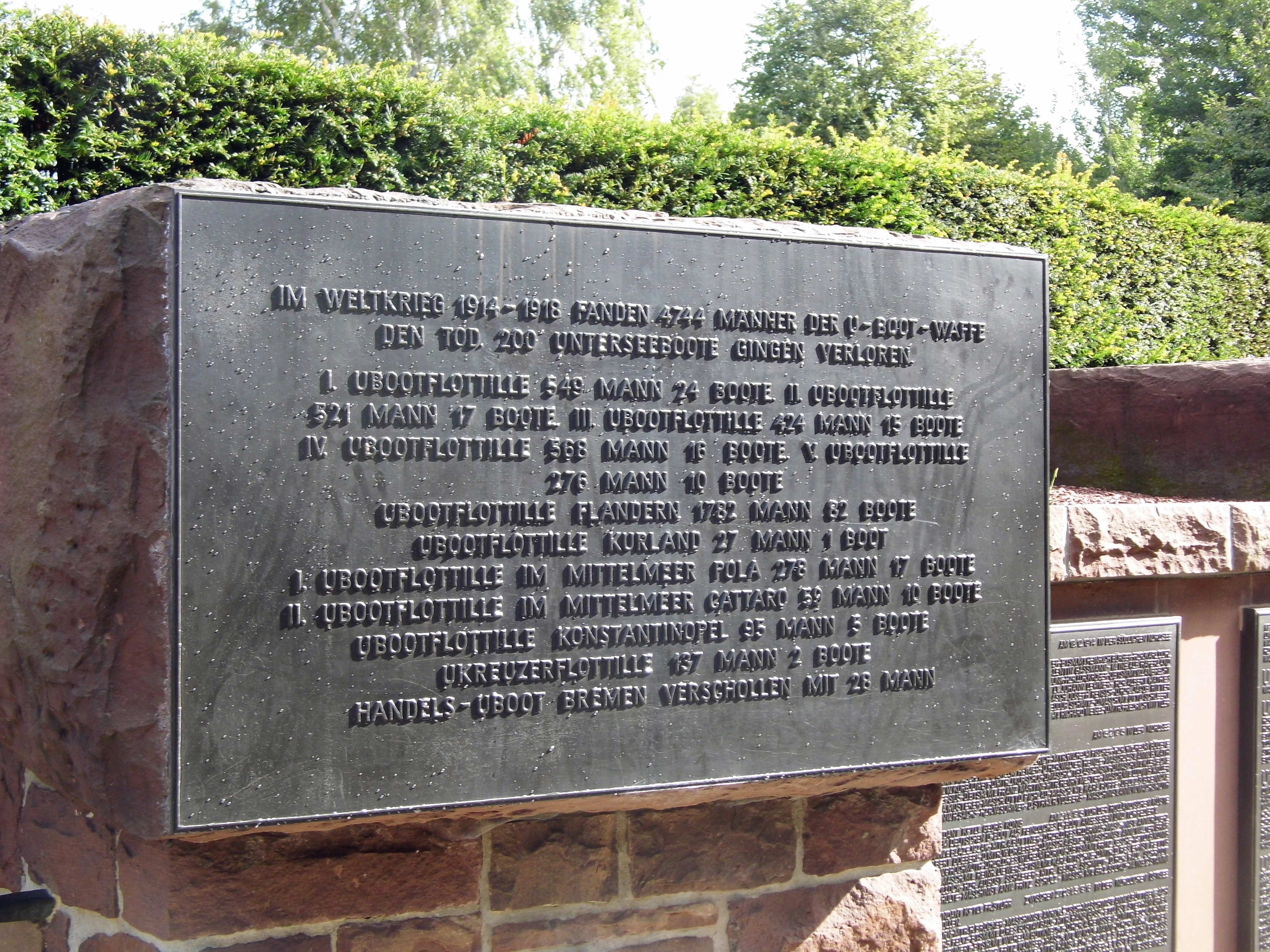 "TO THE MEMORY OF ALL DEAD PEOPLE OF THE U-BOAT WEAPON OF BOTH WORLD WARS 1914 - 1918 AND 1939 - 1945"