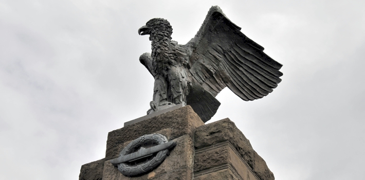 The landmark of the Baltic village Heikendorf, the mighty 4.60 m high eagle on top of the red 15.30 m high Weser sandstone pillar with the submarine-war badge is far visible.