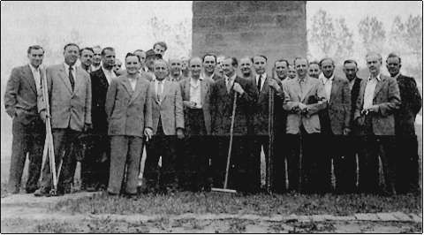 27 Mitglieder der Kameradschaft folgten dem ersten Aufruf und machten sich im Jahre 1956 daran, das in den Kriegs- und Nachkriegsjahren völlig verwahrloste Gelände um das Ehrenmal, so gut es mit den bescheidenen Mitteln ging, zu säubern und zu roden.