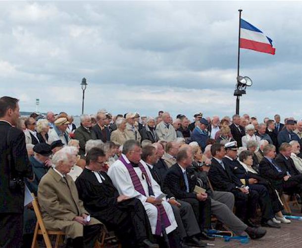 Viele Gäste folgten der Einladung des Volksbundes Deutscher Kriegsgräberfürsorge e.V. zur Gedenkstunde aus Anlass des 70. Jahrestages der Einweihung des U-Boot-Ehrenmals auf der Möltenorter Schanze.